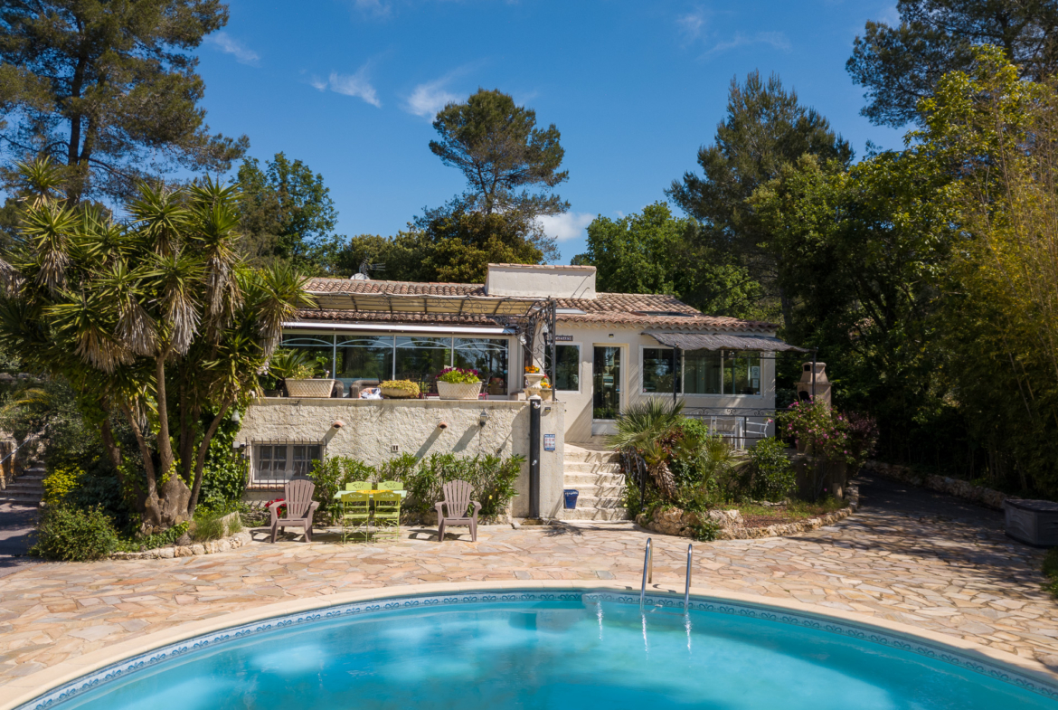 Un salon confortable et une véranda lumineuse donnant sur une grande terrasse prolongent agréablement l’espace de vie. La cuisine, séparée et entièrement équipée, s’ouvre sur la deuxième terrasse, parfaite pour les repas en extérieur. Chaque espace extérieur bénéficie d’une vue imprenable sur la piscine.